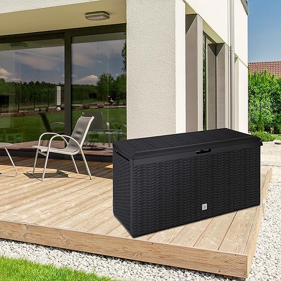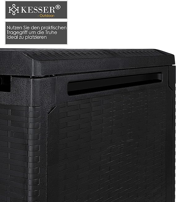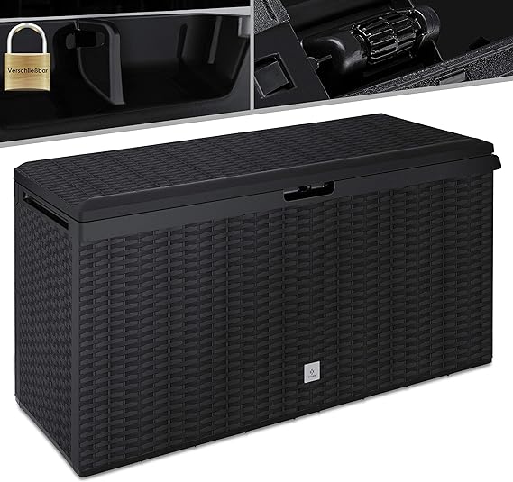 - 𝐋𝐀 𝐂𝐀𝐉𝐀 𝐃𝐄 𝐂𝐎𝐉𝐈𝐍𝐄𝐒: resistente a la intemperie y a los rayos UV está hecha de plástico resistente con aspecto de ratán.