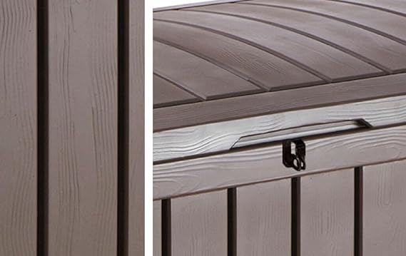 Construido en resina y resistente al clima, esta caja de almacenamiento tiene una apariencia de paneles de madera elegante que no se afecta con la intemperie. La caja Glenwood es tan elegante como útil, con mecanismo de apertura automático, también funciona como asiento para dos adultos. El baúl Keter Glenwood 390L Resina está diseñado para hacer que el almacenamiento sea lo más fácil posible. Con su gran capacidad de 390 litros, todos los objetos se mantendrán secos y ventilados todo el tiempo